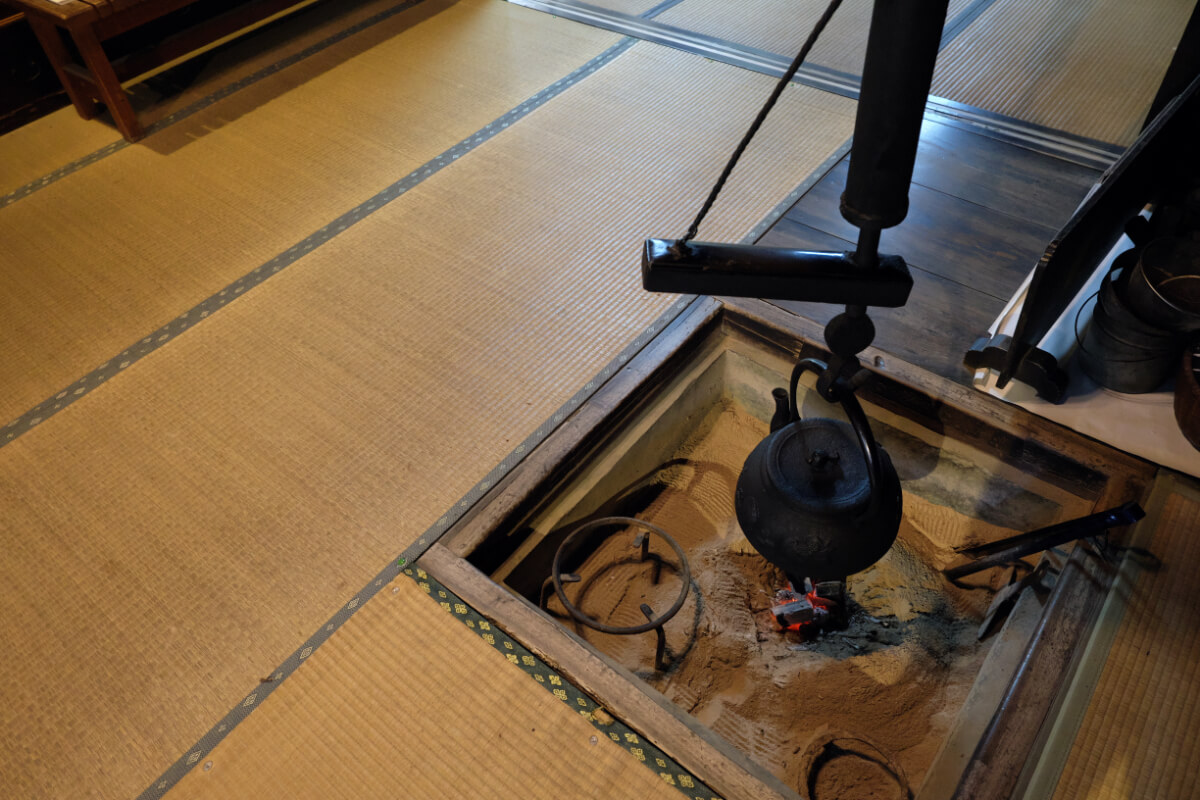 囲炉裏の炭はなんと本物で、手をかざすとほんのり暖かい。