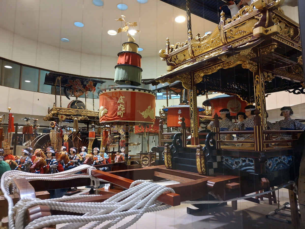 おしゃぎりを展示している建物中心部の広い円形のスペースは、2階までぶち抜けになっていて、そこに置かれた大きなおしゃぎりはなかなかの迫力。