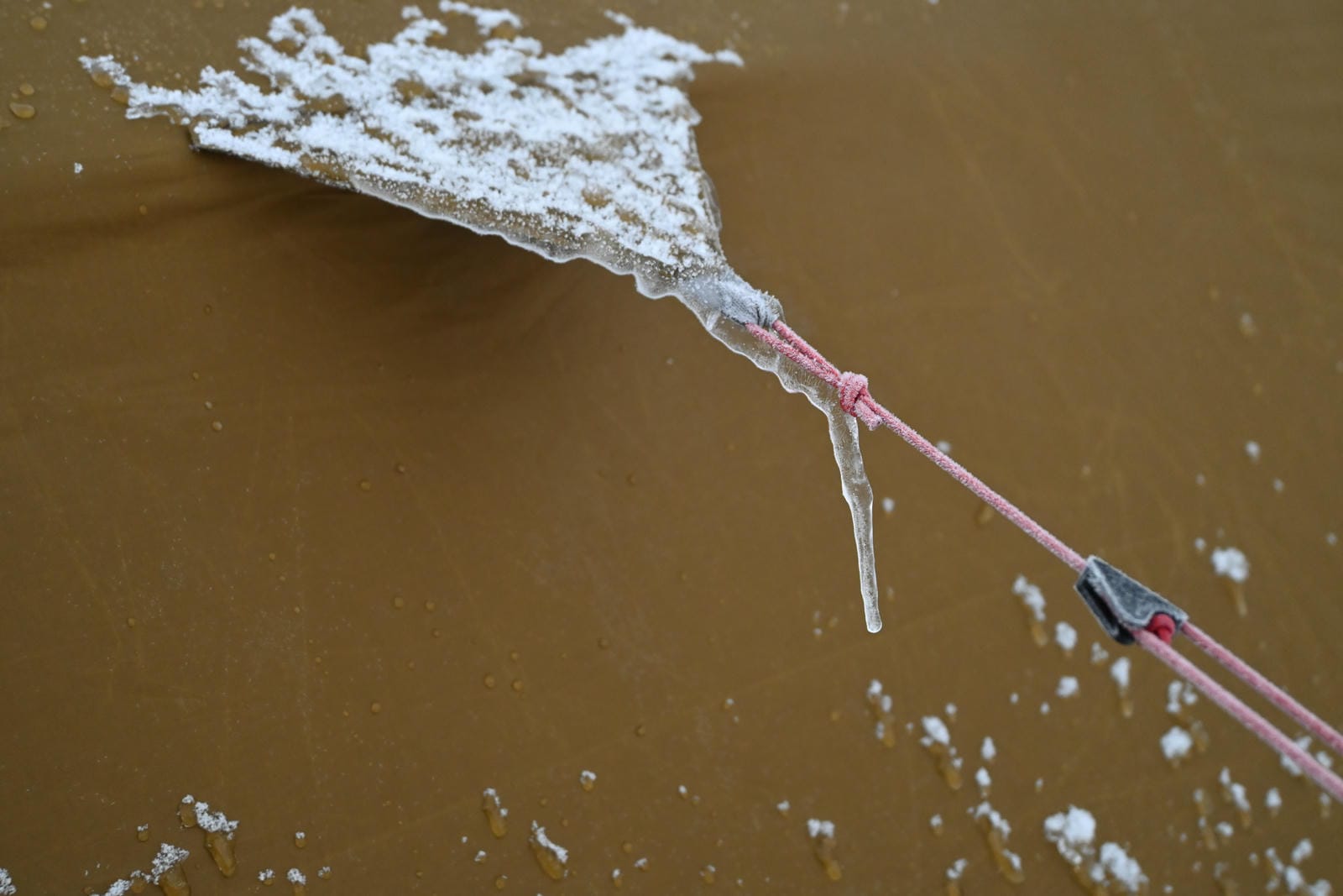 陽の光にも暖かさはなく、テントは凍り付いたまま。