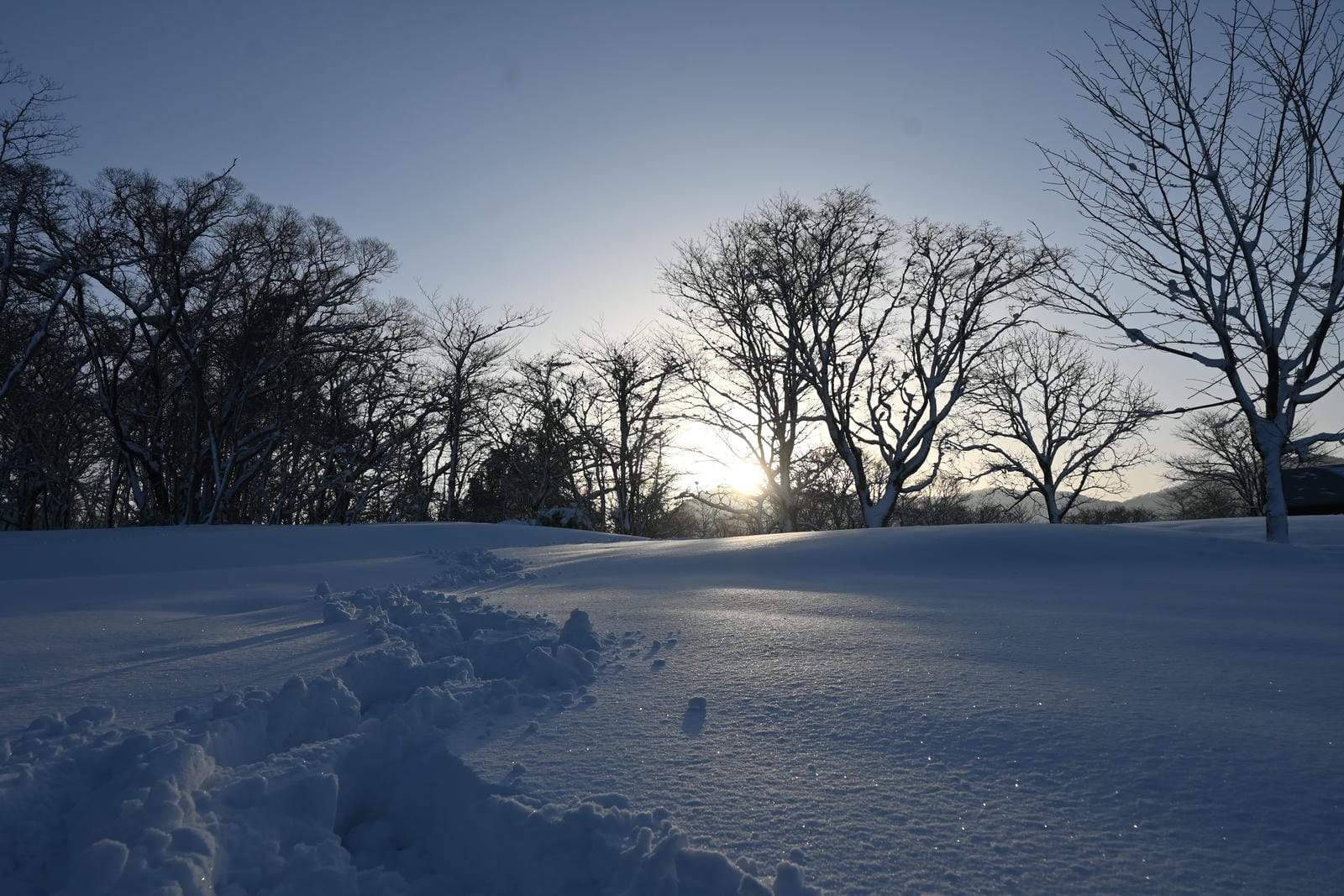 雪の止んだタイミングを見計らって、誰も居ないキャンプ場の奥へ突入開始。